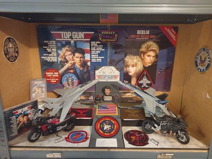 Ce diorama a été fabriqué en 2020 et possède deux boutons : l’un pour l’allumer, et l’autre pour lancer la chanson Take My Breath Away. Comme beaucoup de passionnés, j’ai toujours été fasciné par Top Gun et par l’aviation, qui pour beaucoup est devenu bien plus qu’une simple passion. J'ai réalisé ce projet car pour moi, Top Gun a une signification particulière : chaque fois que j’allume ce diorama, je ne vois pas seulement des avions ou une scène de cinéma mais c’est grâce à ce film que j’ai rencontré ma femme.